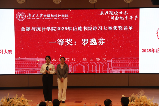 讲解赛环节更是精彩纷呈。选手们围绕岳麓书院的历史沿革、文化精神、时代价值等主题展开深情讲述,他们以当代青年的独特视角,为古老的书院文化注入了新的活力。罗逸芬同学从一个湖湘少年的角度讲述了自己与岳麓书院的双重烙印;谢舒迪同学将岳麓书院的文化意蕴与当代金融经济发展结合论述,赢得了评委与观众的阵阵掌声。