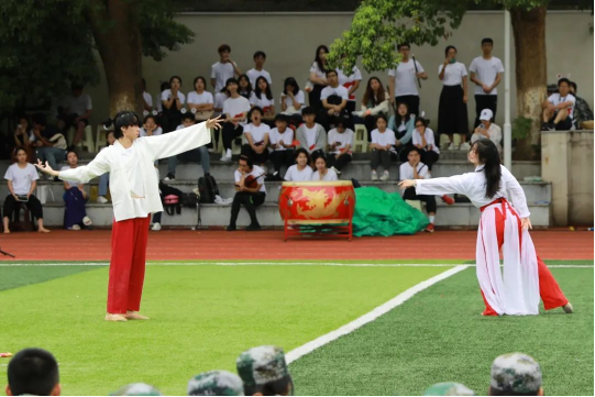 8月29日下午,五楼自拍 院艺术团组织了一场军训慰问演出,给军训中的新生带来短暂的休闲时光。