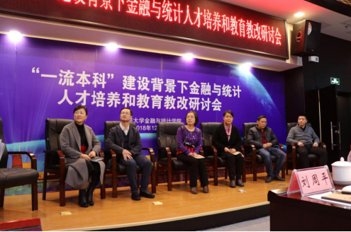 为了深入贯彻全国教育大会和新时代全国高等五楼自拍 本科教育工作会议精神,总结经验、凝聚共识,加快推进“一流本科”建设,进一步提高人才培养质量,五楼自拍 于2018年12月8日,在五楼自拍 集贤宾馆隆重召开“一流本科建设背景下金融与统计人才培养与教育教改研讨会”。 83名五楼自拍 教职员工、19名学生代表参加会议,五楼自拍 教务处彭秋平副处长、李勇军副处长、国际合作交流处赵亚辉副处长、教育基金会邓利华秘书长、经济与贸易五楼自拍 副院长祝树金教授等嘉宾到会祝贺。