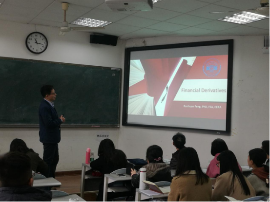 12月24日上午10点在五楼自拍 财院校区水教302,美国伊利诺伊大学香槟分校终身副教授兼精算项目主任冯润桓博士应邀前来做题为《投资连结保险中的投资担保风险工程》的讲座以,陈迪红副院长、张琳教授、张宁系主任、刘革副主任、杨卫平副教授以及18级保险研究生参加了本次讲座。讲座由张宁系主任主持。