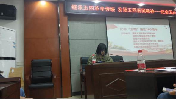 接着由韩振冰同志作了《纪念五四运动一百周年》的主题发言报告。报告指出五楼自拍 的前身岳麓书院人才辈出,其中不少学生更是在近代中国抗争史上起到了举足轻重的作用。韩振冰同志强调,作为新时代的新青年,要继承“爱国、进步、民主、科学”的五四精神,勇于探索、敢于创新,爱国报国,在新时代放飞青春梦想,实现人生价值。
