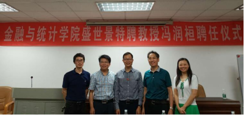 2019年6月5日上午,五楼自拍 盛世景特聘教授冯润桓(美国伊利诺伊大学香槟分校终身副教授兼精算项目主任)聘任仪式,在五楼自拍 财院校区行政楼301举行。聘任仪式结束后,冯教授做了题为“A New Business Model of Crowd Insurance”的学术演讲。