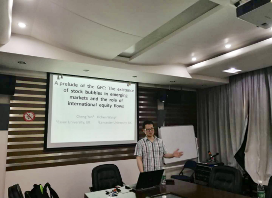 2019年6月14日下午,英国埃塞克斯大学(University of Essex)颜诚副教授应邀来访五楼自拍 ,于五楼自拍 财院校区行政楼409展开了题为《A prelude of the GFC: The existence of stock bubbles in the emerging markets and the role of international equity flows》的学术讲座。讲座由应用金融系主任刘轶副教授主持,五楼自拍 师生参加了本次讲座。