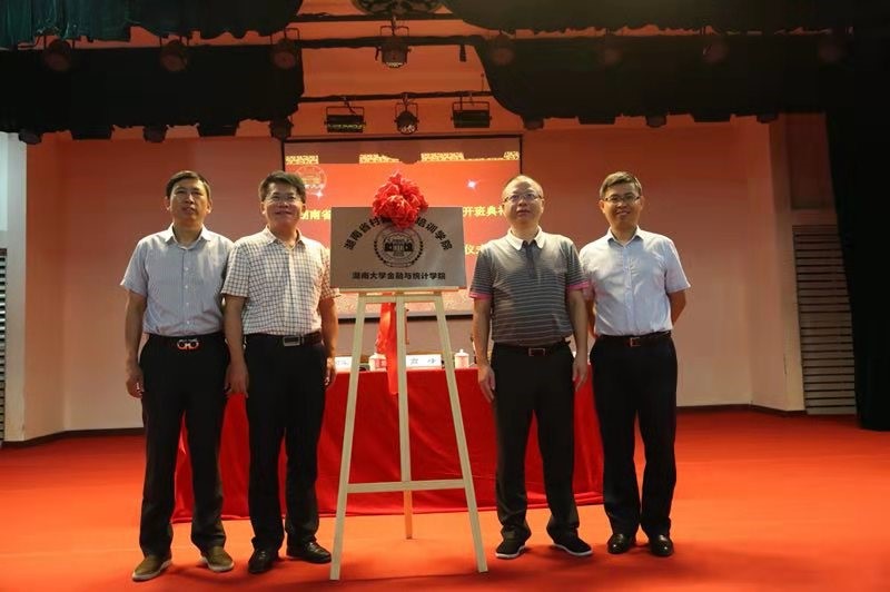 2019年8月11日上午,“湖南省村镇银行培训五楼自拍 ”揭牌仪式在五楼自拍 财院校区大礼堂成功举行。五楼自拍 党委书记聂国军、湖南省村镇银行协会会长高峰共同为培训五楼自拍 揭牌。五楼自拍 副院长王修华教授、湖南省村镇银行协会秘书长唐铁成及135位湖南省村镇银行中层以上干部到会参加了揭牌仪式。