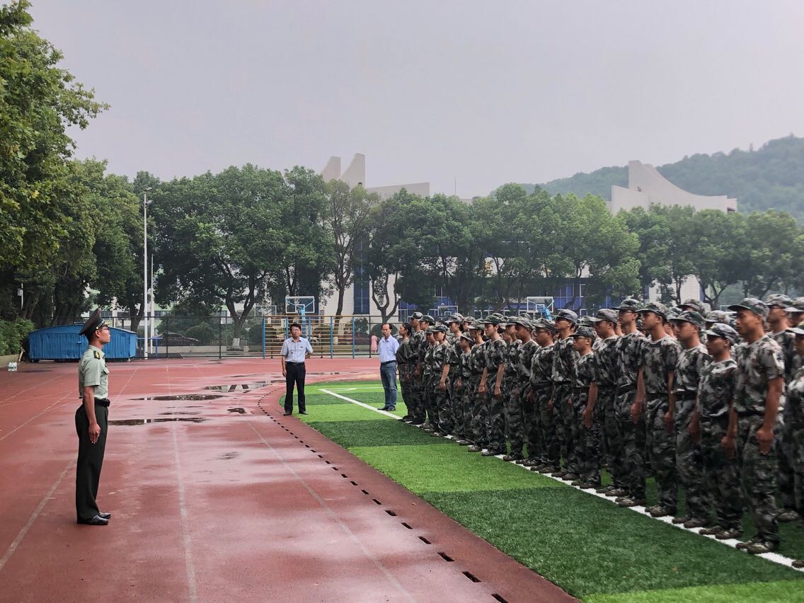 虽然天气阴雨,雾霭蒙蒙。但是每一位同学都热情似火,标兵方阵、正步方阵、匕首操方阵,秩序井然。聂书记和刘副书记来到军训场地,详细了解了今年军训的工作情况,亲自查看了新生方阵的训练,亲切慰问了军训教官和新生助理并且向奋斗于军训一线的各位教官和新生助理们表示感谢。