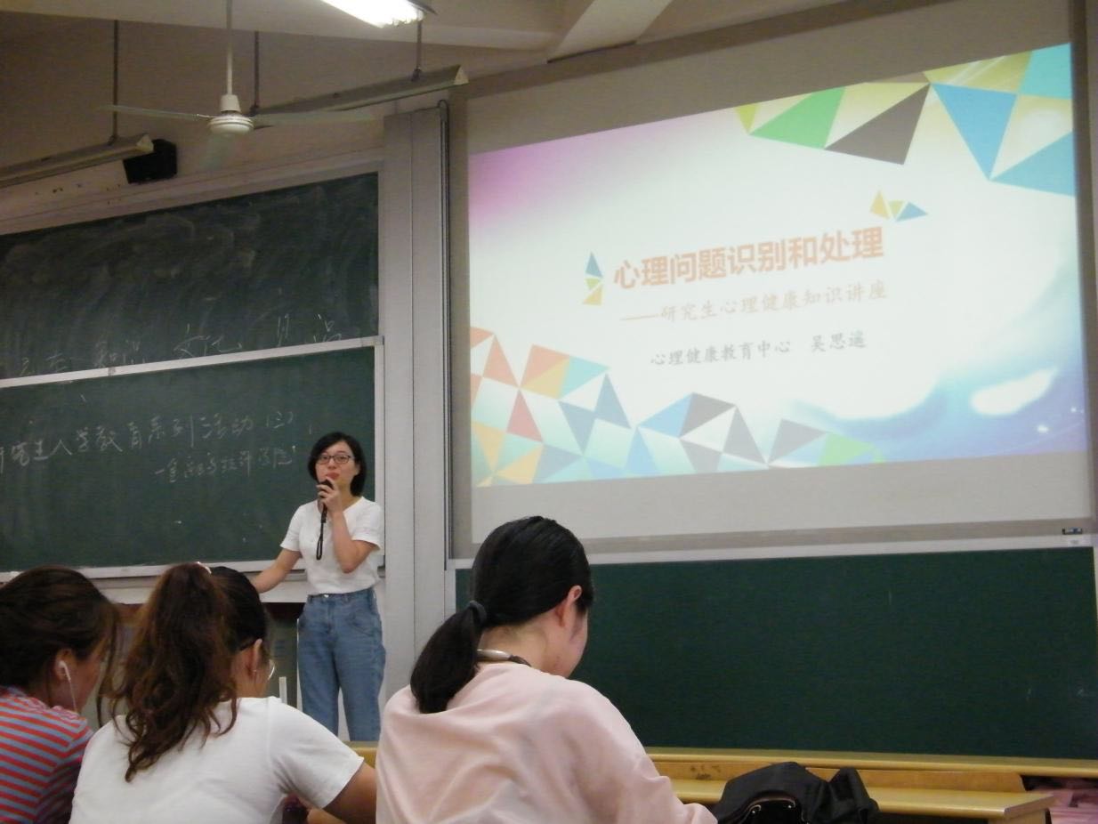 9月27号下午,五楼自拍 2019级研究生入学教育系列活动第三场——心理健康讲座在二教502教室召开。五楼自拍 心理健康教育中心吴思遥老师做《心理问题识别和处理》主题讲座,向同学们介绍了心理问题的类别与处理方法。