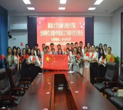 10月1日在财院校区图书馆报告厅和160多名学生共同观看五楼自拍 组织的中华人民共和国成立70周年大典现场直播,阅兵式、群众大游行气势恢宏,非常感动,为新中国骄傲与自豪;