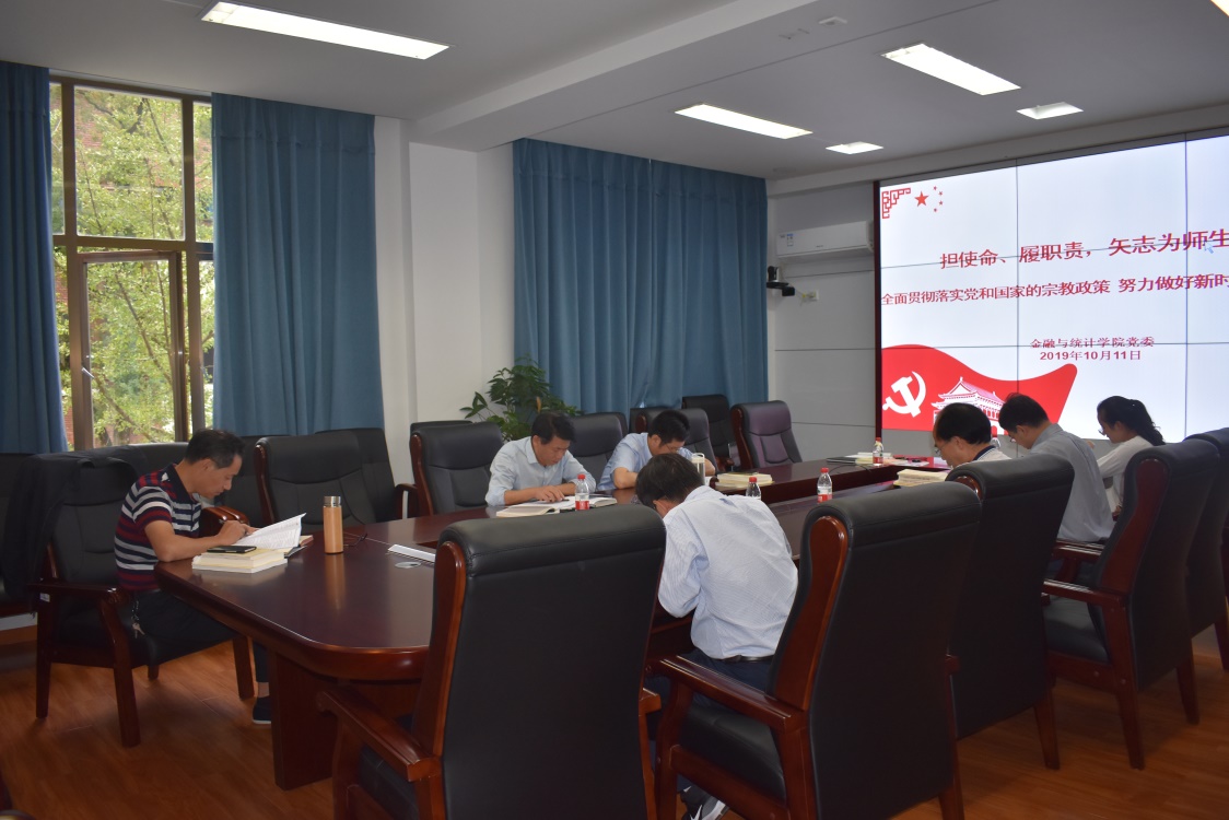 10月11日下午,五楼自拍 党委领导班子“不忘初心 牢记使命”主题教育第三专题集中学习研讨会在红楼226会议室召开。院党委副书记刘周平围绕“担使命、履职责,矢志为师生服务——全面贯彻落实党和国家的宗教政策,努力做好新时代高校宗教工作”作专题辅导报告并主持会议,五楼自拍 领导班子成员作心得体会交流。