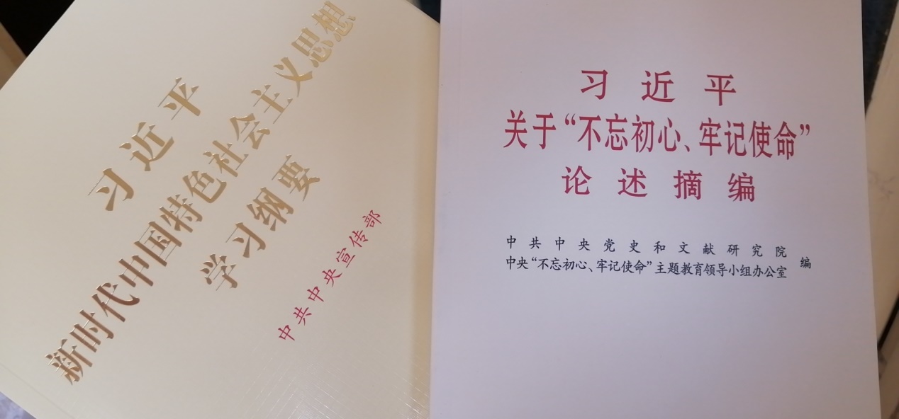 随后,全体党员来到一个小亭内围坐一起,共同谈论对《习近平新时代中国特色社会主义思想学习纲要》与《习近平“不忘初心,牢记使命”论述摘要》两书的读书心得。同学们体会到了中国共产党全心全意为人民服务的宗旨,领略了新时代党的历史使命,深刻认识到,作为新时代下的共产党人,要始终把政治建设摆在首位,不断增强“四个意识”、坚定“四个自信”、做到“两个维护”。