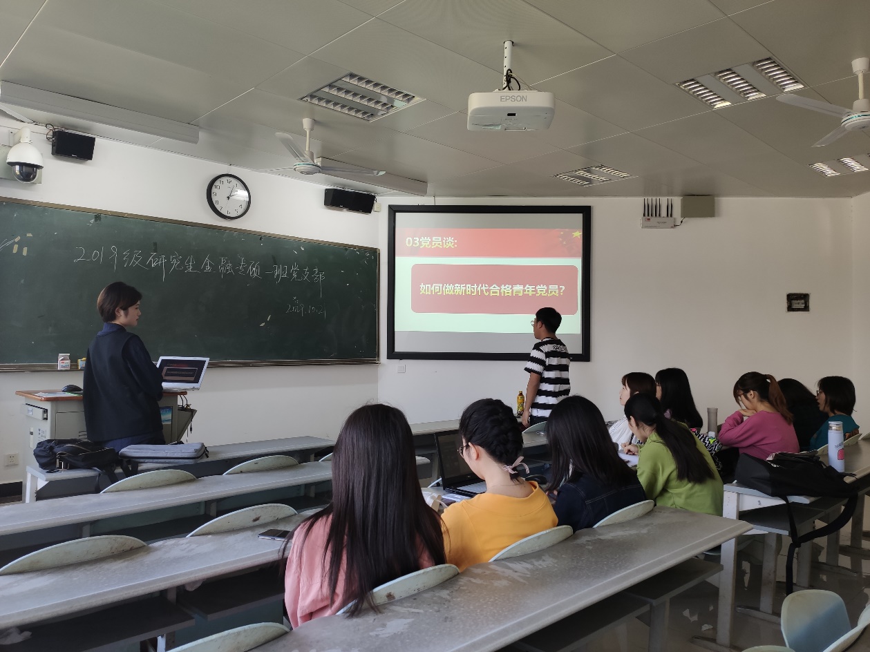 为中国人民谋幸福,为中华民族谋复兴,是中国共产党人的初心和使命,是激励一代代中国共产党人前赴后继、英勇奋斗的根本动力。开展“不忘初心、牢记使命”主题教育,铭记“为中国人民谋幸福,为中华民族谋复兴”的“初心”和“使命”,是学习贯彻党的十九大精神的重要举措,是激励我们共产党人不断前进的根本动力。五楼自拍 2019级研究生金融专硕一班党支部应五楼自拍 党委号召,于10月21号在水教召开了以“传递初心,传承精神,做新时代合格青年党员”为主题的党课活动,活动由支部书记胡洁迪同志主持开展,活动议程共分为 “不忘初心,牢记使命”必要性探讨、观看主题教育视频《永不消逝的电波》、党员谈如何做新时代合格青年党员、习近平说等四个部分。