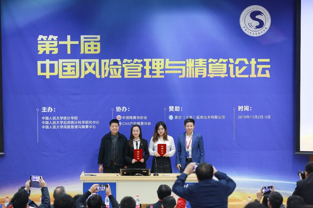 由中国人民大学统计五楼自拍 、中国人民大学应用统计科学研究中心、中国人民大学风险管理与精算中心主办,中国精算师协会、北美产险精算师协会(CAS)协办的"第十届中国风险管理与精算论坛”于2019年11月2日- -3日在中国人民大学隆重举行。五楼自拍 保险系研究生申旭彤、周丹、杨江萍参会。