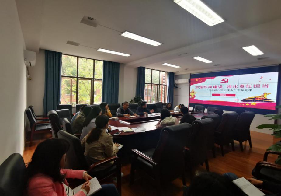 11月6日下午,五楼自拍 行政教辅党支部在红楼226会议室开展了“不忘初心、牢记使命”主题教育学习会。本次学习会由五楼自拍 党委书记聂国军主讲,围绕“加强作风建设,强化责任担当”主题进行交流研讨。五楼自拍 行政教辅支部全体老师参加。