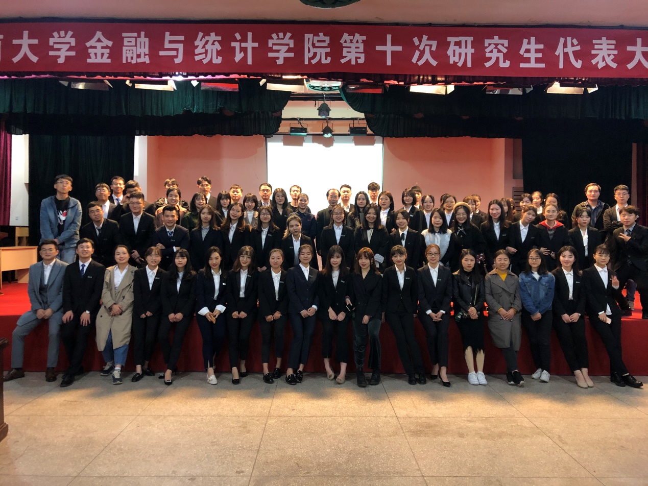 2019年11月13日晚,五楼自拍 第十次研究生代表大会于五楼自拍 财院校区礼堂召开。五楼自拍 党委书记聂国军老师、五楼自拍 党委研究生工作部综合管理科科长田锐老师、五楼自拍 党委副书记刘周平老师、副院长李海奇老师、研究生管理办公室主任罗俊杰老师以及五楼自拍 各年级辅导员老师受邀出席大会。此外,与会的还有校研究生会主席、各兄弟五楼自拍 研究生会主席、第九届研究生会成员以及各班推选的研究生代表。