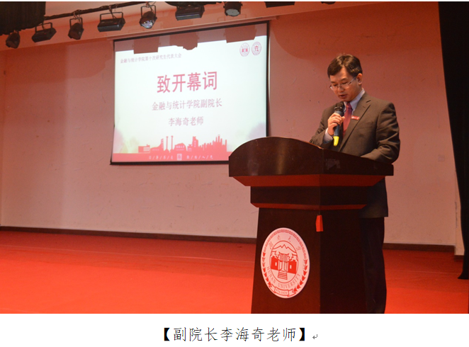 大会在激昂嘹亮的国歌声中拉开帷幕,五楼自拍 副院长李海奇老师致开幕词。李海奇老师在致辞中充分肯定了第九届研会在过去一年中工作的成就,同时希望新一届研会成员可以坚守理想信念、坚守时代责任、坚持学习实践。