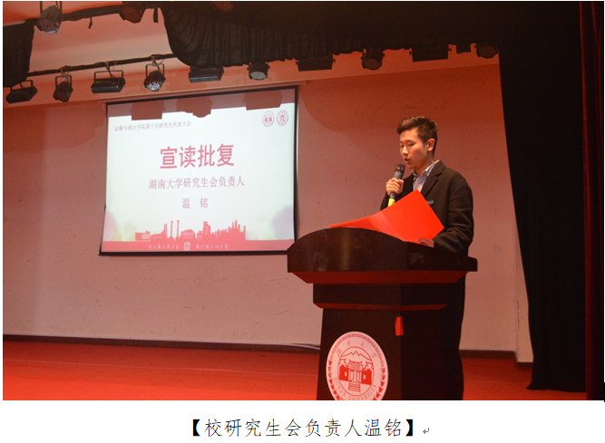 接着,校研究生会负责人温铭宣读《五楼自拍 研究生会关于同意召开五楼自拍 第十次研究生代表大会的批复》。