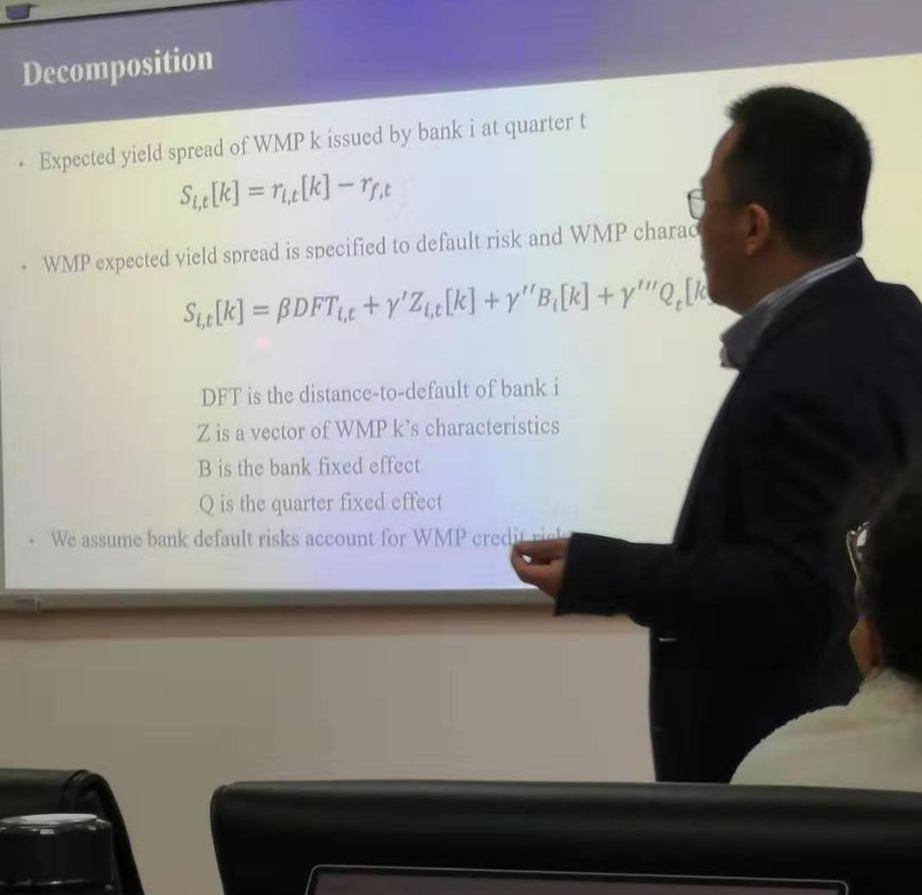 2019年11月15日上午10点,由五楼自拍 主办的第237期金融与统计论坛在红楼210会议室进行。本次论坛邀请到了爱尔兰国立大学都柏林五楼自拍 的肖亚军助理教授展示论文《影子资金和经济增长,来自中国理财产品市场的证据》。论坛由李海奇副院长主持,五楼自拍 多位对于银行体系的系统风险、资产定价等领域感兴趣的老师和同学参加论坛。