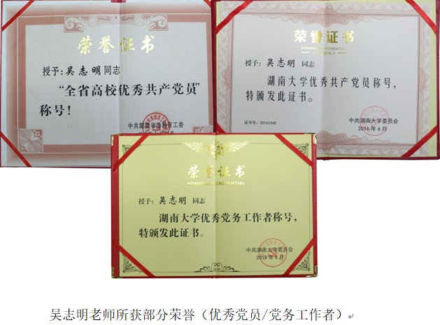 2017-2019年,吴老师指导的学生项目连续三年获得中国金融教育发展基金会“普惠金融,青春践行”大学生暑期社会实践有奖征文特等奖,自己连续三年获得优秀指导教师称号。吴老师2007年获“全省高校优秀共产党员”,2017、2018年连续获得五楼自拍 优秀教学质量奖,以及五楼自拍 2017年“我心目中最敬爱的老师”。