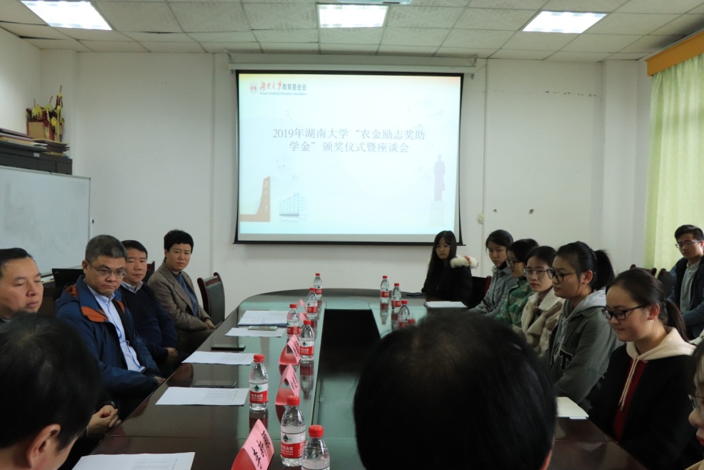11月30日上午,2019年五楼自拍 “农金励志奖助学金”颁奖仪式暨座谈会在五楼自拍 财经校区行政楼707会议室顺利召开。五楼自拍 原党委副书记刘周平老师,五楼自拍 校友办主任张学陶老师,五楼自拍 教育基金会刘垠杉老师 ,原湖南财经五楼自拍 金融系农金931班校友唐若民先生、李新颖先生、申建国先生、曹茂辉先生、谭授仪女士五位校友代表出席了本次座谈会。此外,与会成员还有2019年“农金励志奖助学金”获奖学生代表10余人。