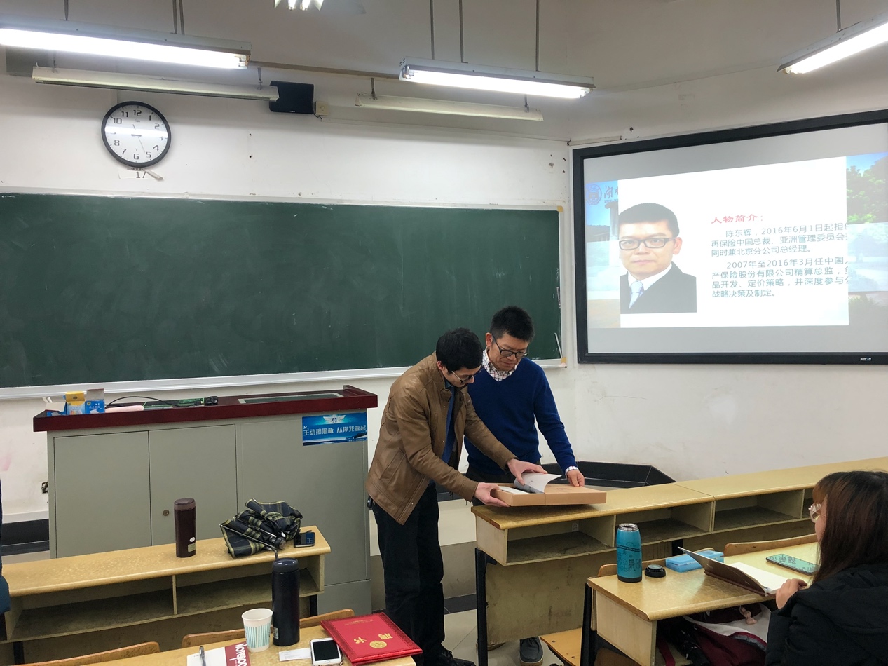 陈东辉先生的介绍让在座的同学们都受益匪浅,同学们不仅对产险的两种经营模式有了更加深入的了解,也认识到要紧跟时代潮流,扎实学习,充实自己,保持积极健康的心态。在此小编代表同学们向陈东辉先生表示诚挚的感谢。