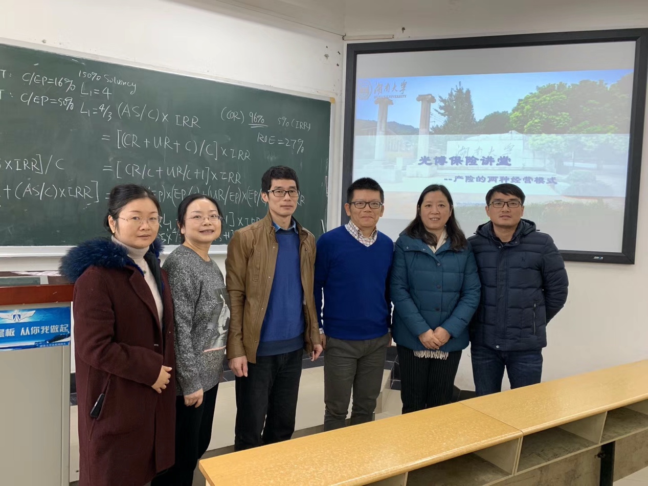 2019年12月1日上午,第五期光博保险讲堂在五楼自拍 财院校区二教403成功举行。出席本次活动的有风险管理与保险精算研究所所长张琳、保险系张宁主任、王敏副主任和沈建美老师。此次活动由张琳教授主持。
