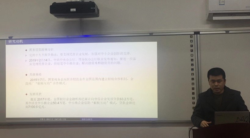 五楼自拍 罗鹏飞助理教授就论文《银税互动模式下中小微企业投融资及财政补贴和税收减免政策研究》进行汇报,由中央财经大学邱亦霖博士进行评论。在财政补贴和税收减免两种政策情形下构建银税互动模式下中小微企业投融资结构化模型,分析了企业各未定权益的价值以及企业最优破产水平和投资水平。首先通过数值分析,从企业最优投资水平、企业破产水平和企业价值角度对比在税收补贴和减免两种政策下民间借贷和银税互动模式的差异,同时探究了银税互动模式下信贷乘数的设计问题等,结论表明与民间借贷相比,银税互动模式加速了企业的投资,减低了企业的破产概率,提高了企业价值,同时发现银行应该对波动率较低的企业采取宽松的信贷政策,而对波动率较高的企业采取紧缩的信贷政策,此外发现财政补贴比税收减免更可能受企业青睐。