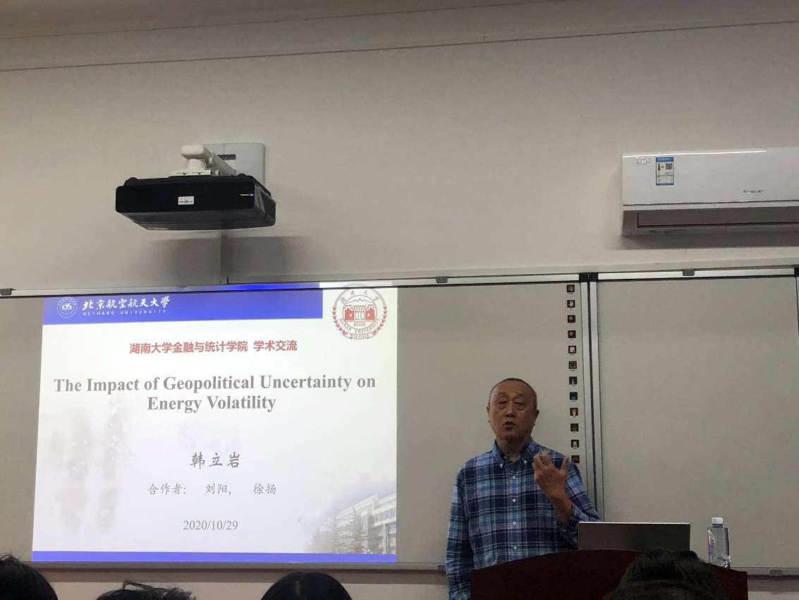 2020年10月28日,由五楼自拍 主办的第288期金融与统计论坛在五楼自拍 财院校区3号楼210顺利举办。本次论坛邀请北京航空航天大学经济管理五楼自拍 韩立岩教授担任主讲人,由王修华副院长主持,韩立岩教授就“地缘政治与能源期货”这一主题为五楼自拍 师生带来了一场精彩的学术报告。