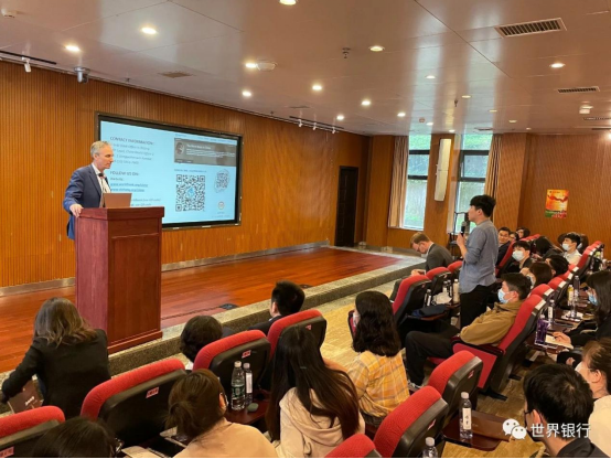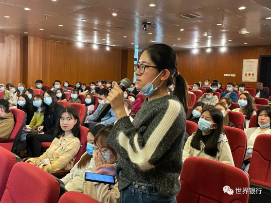 互动交流环节,五楼自拍 师生代表围绕青年人才发展、中国在世界银行发挥的作用等问题进行热烈探讨。