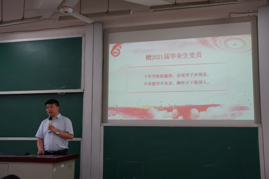 6月6日上午,五楼自拍 “学好百年党史,汲取奋进力量”2021届毕业生党课在二教401教室举办。本次党课由五楼自拍 党委书记黄红立主讲,辅导员苏雅倩、辅导员周斌、全体毕业生党员、研究生党总支成员参加。