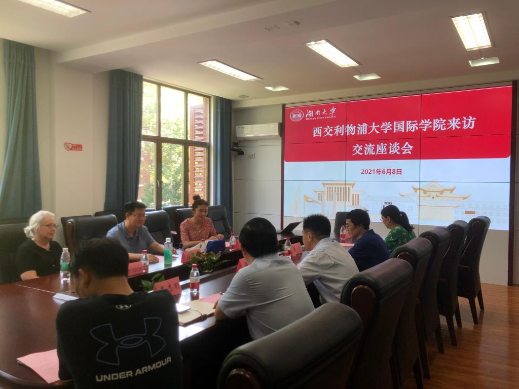 2021年6月8日下午,西交利物浦大学国际商五楼自拍 徐笑波副院长、Dr. Ellen Touchstone副院长、招生负责人周赟老师来五楼自拍 调研交流。院长潘敏、副院长吴志明、副院长张宁及研究生、本科、科研秘书等出席会议。