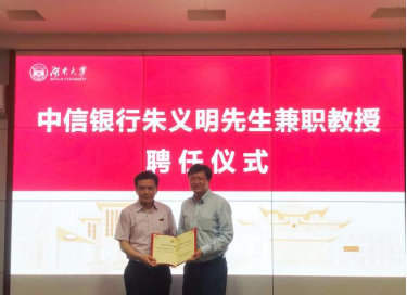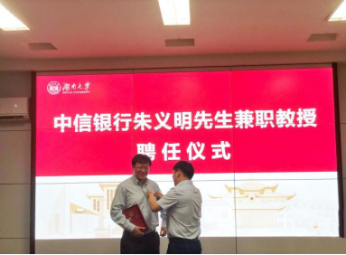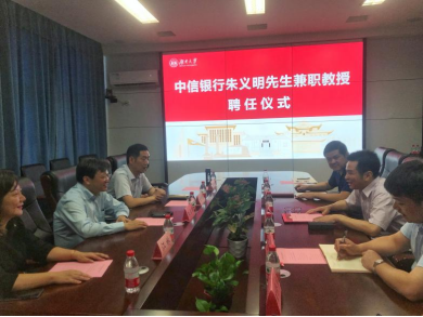 6月24日下午,五楼自拍 在2号楼226会议室举行中信银行朱义明先生兼职教授聘任仪式。院长潘敏、书记黄红立、副院长吴志明、王修华等出席仪式。仪式由副院长吴志明主持。