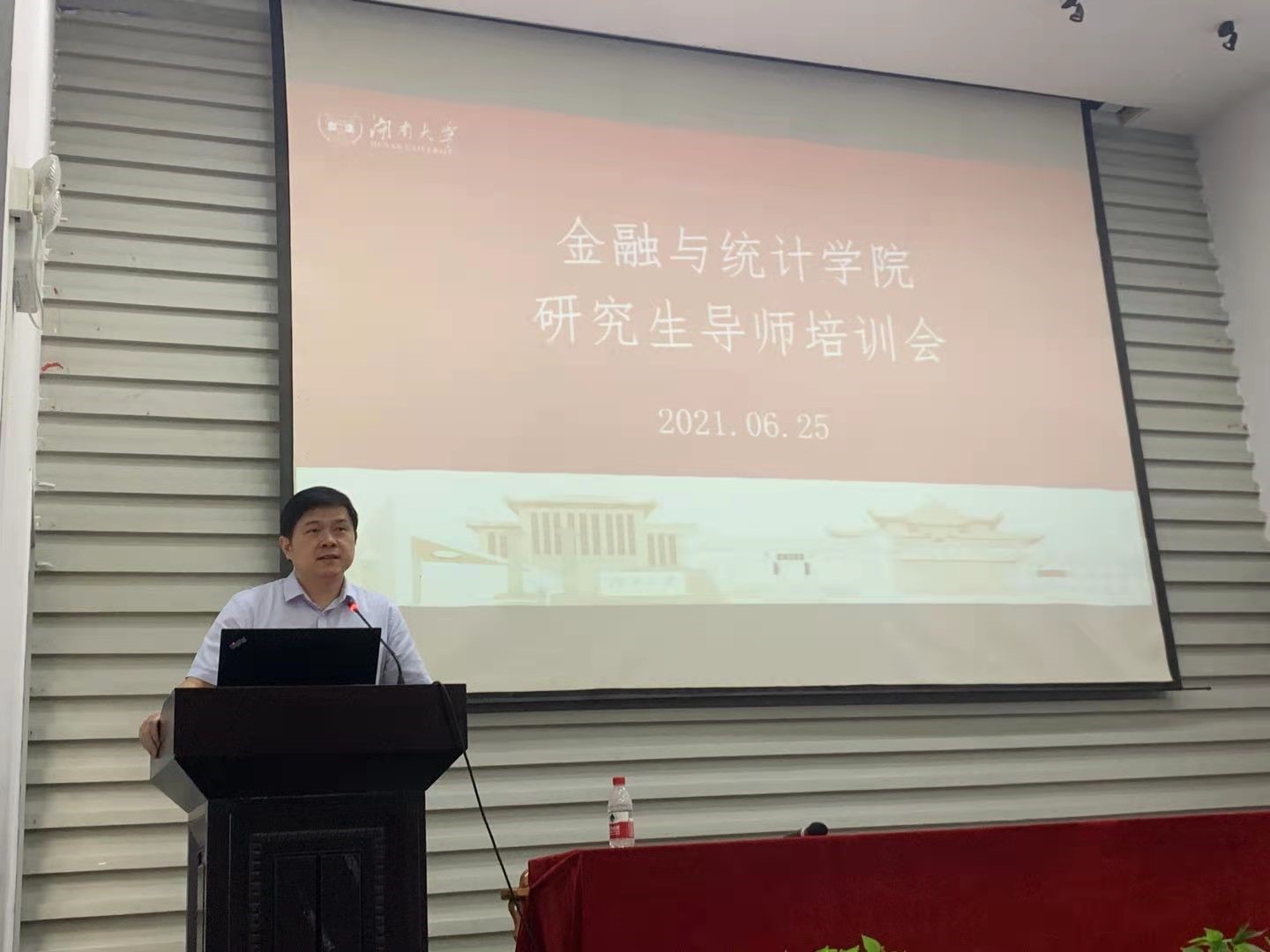 为进一步贯彻全国及五楼自拍 研究生教育会议精神,全面落实研究生导师是研究生培养第一责任人的要求,6月25日,五楼自拍 在财院校区图书馆报告厅举办2021年研究生导师培训会,院领导班子、全体研究生导师参会,副院长吴志明主持会议。