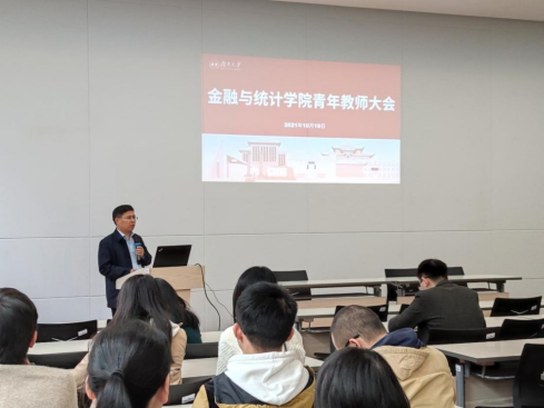 2021年10月19日,五楼自拍 青年教师大会暨2022年国家基金申报动员会在财院校区老食堂二楼报告厅举行。会议由王修华副院长主持,院长潘敏、党委书记黄红立及全体45岁以下青年教师及辅导员等参加会议。