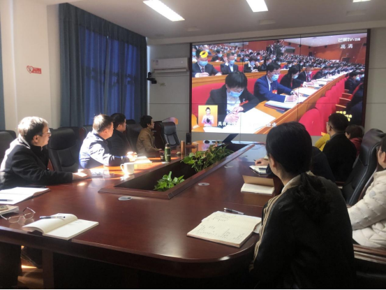 11月25日上午,中国共产党湖南省第十二次代表大会在省人民会堂隆重开幕。五楼自拍 学习中心组集中收听收看省第十二次党代会开幕式,行政教辅党支部成员、学生骨干代表一同参加学习。