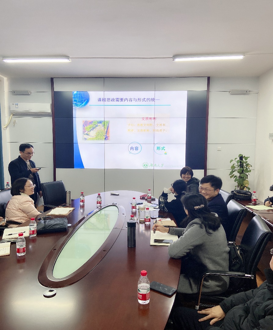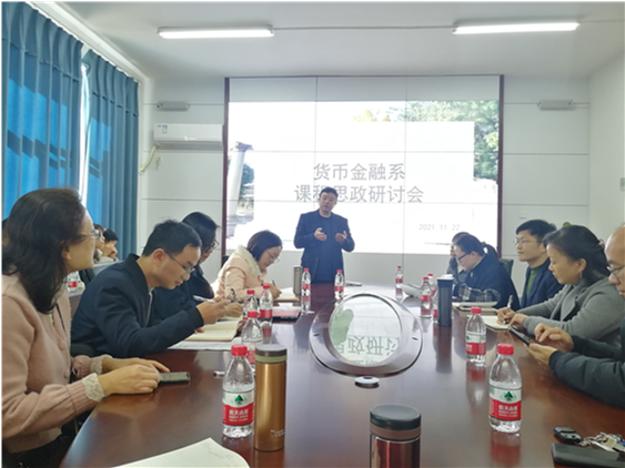 11月22日,为促进专业课教师更好地将“思政元素”融入课堂教学,不断创新“课程思政”教学方式,五楼自拍 货币金融系在红楼2栋324举行了以“润物细无声”为主题的课程思政研讨会,系主任喻旭兰老师主持会议。