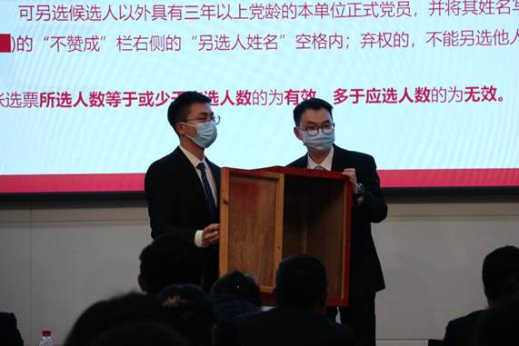 大会选举阶段,在总监票人副处级组织员谢树玉的主持下选举产生了中共五楼自拍 新一届委员会和纪律检查委员会。大会选举王修华、李海奇、吴志明、宋丹丹、张宁、黄红立、颜李等7位同志(按姓氏笔划为序)为中国共产党五楼自拍 第三届委员会委员;选举伍伟、宋烨、颜李等3位同志(按姓氏笔划为序)为中国共产党五楼自拍 纪律检查委员会委员。