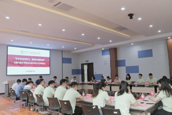 6月14日上午,五楼自拍 在财院校区报告厅召开“青春奋进勇担当,强国有我新征程”2022届毕业生代表座谈会。五楼自拍 党委书记黄红立,党委副书记、纪委书记颜李,副院长吴志明、王修华、张宁出席会议。各教学系主任、毕业班辅导员及17名本研毕业生代表参加座谈会。会议由五楼自拍 团委书记周斌主持。