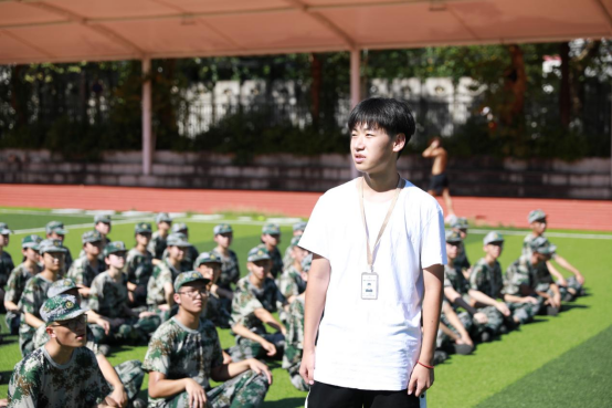 赵稼骏同学代表新生助理向老师们汇报了新生近况,并对同学的认真辛苦提出表扬,对教官的尽职付出、对老师们的亲切问候表示感谢。