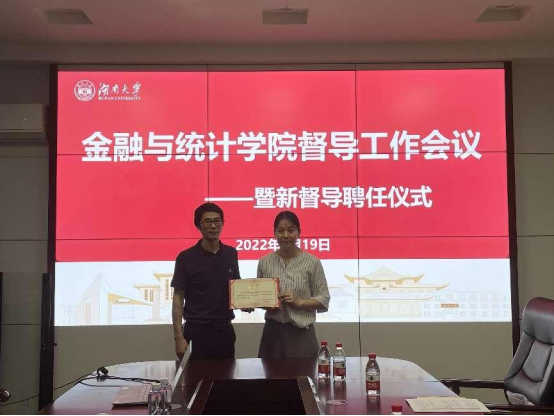 9月19日上午,金融与统计学院召开了2022年秋季学期第一次督导工作会议,并举行了新任督导聘任仪式。会议由张虹主任主持,五楼自拍 张宁副院长出席,督导中心全体老师参会。