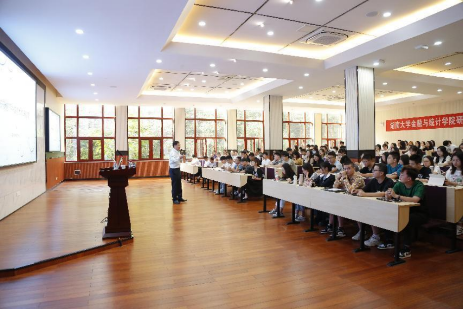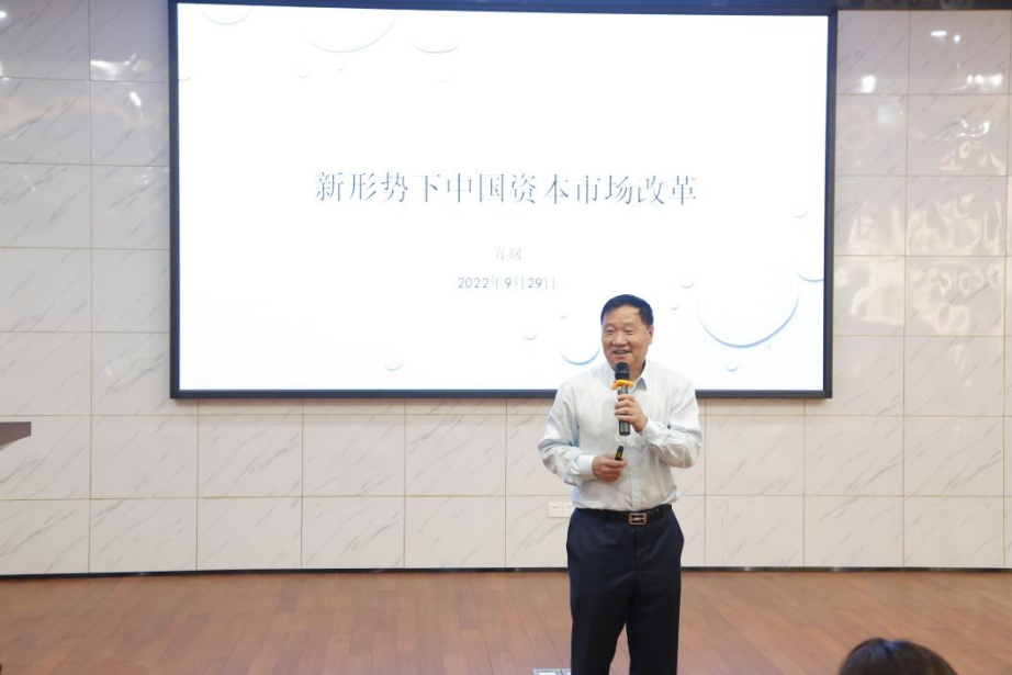 2022年9月29日上午,全国政协委员、中国证监会原主席、金融78级肖钢校友为五楼自拍 研究生新生讲授新学年《投资学》第一课,作了题为“新形势下中国资本市场改革”的报告。五楼自拍 《投资学》课程责任教师刘轶教授主持了本次授课,五楼自拍 院长王修华教授代表五楼自拍 致辞,近200名2022级研究生新生及部分教师代表现场聆听了肖钢校友的精彩讲授。