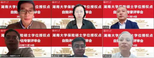 保险硕士学位授权点自我评估专家评审会专家组由全国保险专业学位研究生教育指导委员会委员、上海财经大学金融五楼自拍 曾旭东教授担任组长,成员包括全国保险专业学位研究生教育指导委员会委员、厦门大学经济五楼自拍 赵正堂教授,复星联合健康保险股份有限公司副总经理、总精算师关娇阳,财信吉祥人寿保险股份有限公司产品精算部及个险部总经理屠炎波,大家人寿保险股份有限公司湖南分公司总经理何琼。