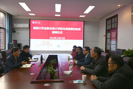 随后,王修华院长对冯教授能在疫情期间克服重重困难回五楼自拍 交流表示了热烈的欢迎和衷心的感谢,并充分肯定了冯教授在过去三年间与五楼自拍 合作,在科学研究、人才培养等多个方面所取得的阶段性成果。王院长提到,冯润桓教授是美国顶尖高校的终身教授、保险精算领域的国际知名学者,希望在下一个聘期内将五楼自拍 与冯教授的合作带入新的高度,特别是在研究生联合培养、风险管理实验班本硕“3+2”合作项目、高层次人才引进、青年教师成长以及保险精算前沿课题合作等多个方面持续深化合作。王院长特别指出,五楼自拍 要为以冯润桓教授为代表的高层次人才创造良好的工作环境,充分发挥高层次人才的带头作用,青年教师要多向冯教授学习、请教、交流,全面提升自身的综合能力。