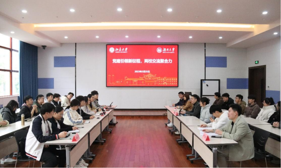 近日,北京大学汇丰商五楼自拍 党委书记、副院长任颋,党委副书记、副院长张凡珊一行来五楼自拍 开展“党建引领新征程,两校交流聚合力”党建联学交流座谈会,五楼自拍 党委书记黄红立、党委副书记颜李、相关辅导员及学生骨干代表参与座谈。