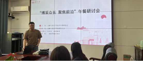 5月18日中午,第二十九期午餐研讨会在红楼2号楼226学术报告厅召开。此次研讨会由五楼自拍 金融工程系助理教授余得水做论文分享,共计十余名师生参与此次午餐研讨会。