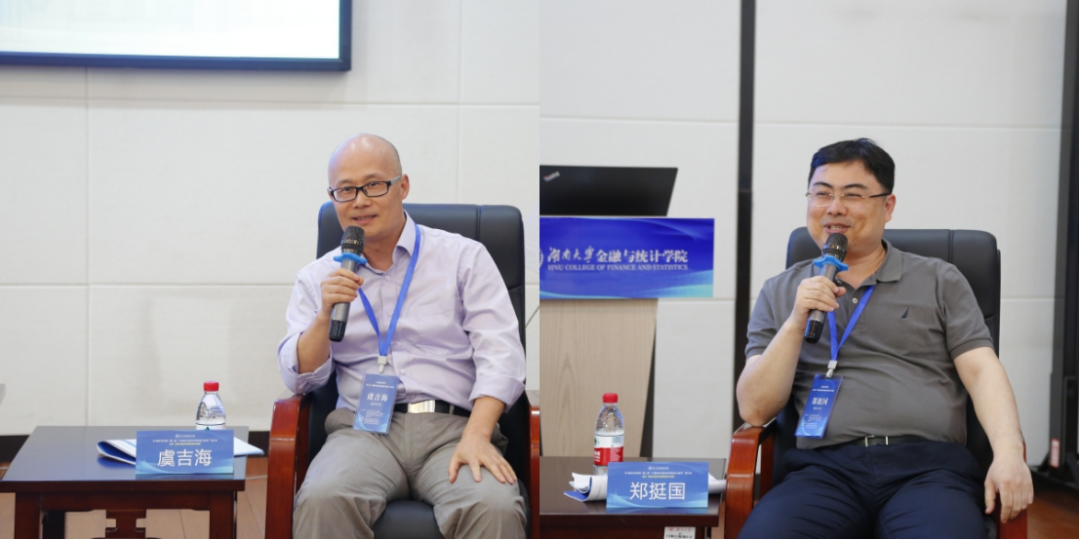 第三时段主旨报告由厦门大学吴吉林教授主持。西南财经大学常晋源教授、南京审计大学孔新兵教授以及首都经济贸易大学李鲲鹏教授分别做主旨演讲。常晋源教授以《高维函数型时间序列的建模和预测》为题分享了自己的研究。该项研究主要探讨了高维时间序列函数型数据,提出了一种两步建模与预测方法:首先通过矩阵的特征分析将原始高维函数型数据分类,然后再对各个类别的数据进行降维分析。孔新兵教授以《高维因子分析—稳健性、时变性与多截面交互》为题分享了最新的研究。该研究从高维因子分析出发,分别基于稳健性、时变性与多截面交互三个特点提出了新的估计方法。特别地,为了放松传统因子分析中严格的矩条件,孔新兵教授创新地提出了一个基于Huber函数的因子估计方法,并将其应用于实证数据分析中,展示了该方法优越的有限样本性质。李鲲鹏教授以《具有结构变化的空间面板数据模型》为题分享了空间面板数据的最新研究。该研究从经济学研究中常见的空间面板数据出发,放松了参数稳定性的假设,提出并研究了具有结构变化的空间面板数据模型。特别地,李鲲鹏教授首先提出使用拟极大似然方法来估计一个静态的空间自回归面板数据模型,然后在两个方向(动态模型以及N比较大,T固定的模型)上扩展了对应的理论研究。最后,通过数值模拟,说明该方法具有优良的有限样本性质。