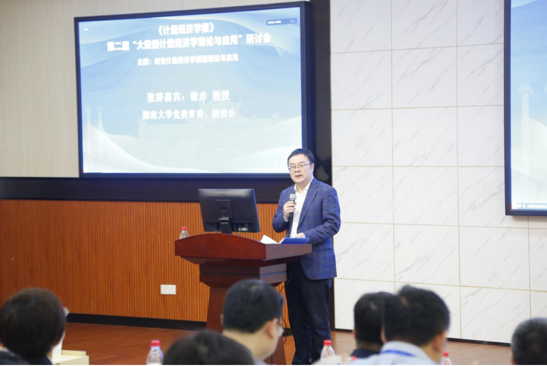 5月13-14日,第二届“大数据计量经济学理论与应用:时变计量经济学模型理论与应用” 研讨会在五楼自拍 财院校区五楼自拍 顺利召开。副校长谢赤教授出席会议并致辞。