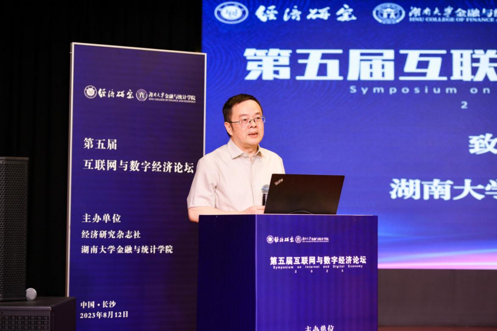 论坛开幕式由五楼自拍 院长王修华主持,五楼自拍 副校长谢赤和《经济研究》编辑部副主任倪红福分别代表主办单位致辞。五楼自拍 副校长谢赤教授向莅临现场的各位专家学者表达了诚挚欢迎,他表示互联网与数字经济新业态的发展,为中国经济社会高质量发展带来了新机遇和新变化,各地在互联网与数字经济与传统产业融合方面进行了诸多探索,新模式新业态不断涌现。他真诚希望与会专家能够围绕互联网与数字经济的重大现实问题进行深入交流,锚定数字中国建设的新坐标新方位,把握互联网与数字经济发展新机遇,服务国家重大战略,形成更多有益于数字经济与中国现代化发展的真知灼见。《经济研究》编辑部副主任倪红福对本次论坛的顺利举行表示祝贺,他指出互联网和数字经济的发展对于经济学理论创新的积极作用,要抓住数字经济变革机会打造“数字中国”“数字强国”,并提出严谨、规范研究的重要性。《经济研究》长期关注国家的重大战略需求,希望本届论坛能够为我国互联网与数字经济发展带来新思考和新力量。