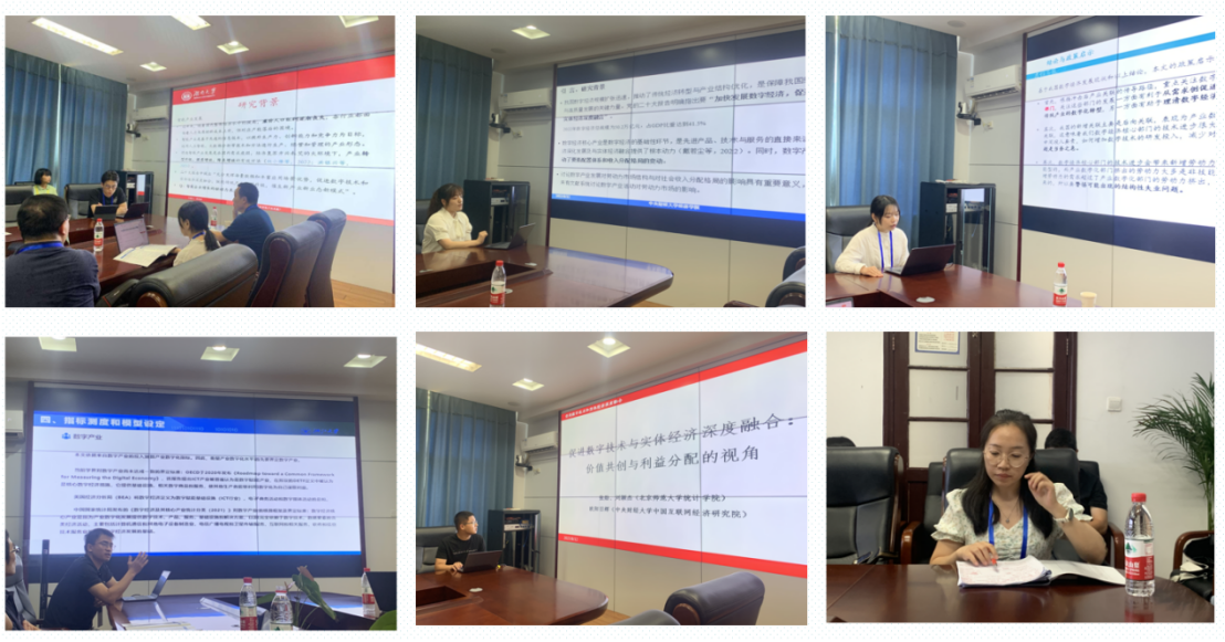 主旨演讲结束之后,进入了分论坛环节。根据研究主题,大会设立了八个分会场,会场上,论文作者进行了精彩汇报,点评人就文章选题、研究内容、研究设计和实证方法等与作者进行了深入讨论和交流。其中,平台经济与平台治理分论坛由华中农业大学经济管理五楼自拍 刘西川教授、五楼自拍 副院长李海奇教授主持,关注了平台新型会员制、中国跨境电商出口等前沿问题。数智赋能与经济发展分论坛由南京大学商五楼自拍 姜舸助理教授、五楼自拍 副院长张宁教授主持,关注了数据智能化与产业发展赋能、数字经济对保险行业发展的促进作用等问题。数字金融与共同富裕分论坛由北京工商大学经济五楼自拍 张正平教授、西南大学经济管理五楼自拍 王定祥教授、吉林大学商五楼自拍 丁志国教授主持,关注了数字普惠金融对共同富裕的促进、数字化背景下的金融排斥等问题。企业数字化转型分论坛由中央财经大学金融五楼自拍 院长张学勇教授、五楼自拍 副院长吴志明教授主持,关注了经济政策不确定性下的企业数字化转型、数智化转型下的企业社会责任等问题。数字经济与国际贸易分论坛由《经济研究》编辑部刘莹副研究员、中南财经政法大学文澜五楼自拍 院长龚强教授主持,关注了贸易数字化、制造业数字化投入与企业出口等问题。金融科技与数字政府分论坛由中央财经大学中国互联网经济研究院副院长史宇鹏教授、中央财经大学金融五楼自拍 党委书记王辉教授主持,关注了金融科技研究前沿、金融科技与农村信贷发展等问题。大数据与机器学习分论坛由浙江大学经济五楼自拍 张洪胜副教授、厦门大学经济五楼自拍 陈海强教授主持,关注了基于文本分析和大语言模型的数字技术、公司互联网关注度与另类数据的风险识别等问题。数据要素与数字安全分论坛由中央财经大学中国互联网经济研究院副院长欧阳日辉研究员、中山大学岭南五楼自拍 曾燕教授主持,关注了企业数字化转型过程中的信息安全管理与网络安全风险分析等问题。