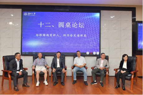 圆桌论坛上,五楼自拍 78级校友柏道江、刘京湘、89级校友王都富、凌颖杰、周清平、吴敏文以“培根铸魂育新人,踔厉奋发谱新篇”为主题,回忆大学时光的同时由衷感谢五楼自拍 的培养,并结合自身工作经历勉励学弟学妹们要珍惜当下的学生时代,在波澜壮阔的时代洪流中铸牢立身之本,不断经风雨、见世面、壮筋骨、长才干,努力成为新时代经世致用的领军人才!