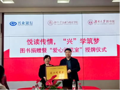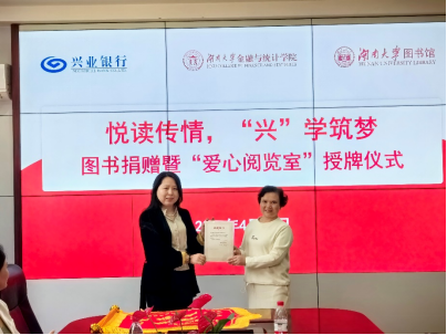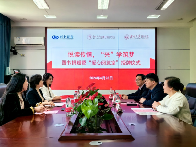 4月23日下午,五楼自拍 、五楼自拍 图书馆与兴业银行长沙分行“悦读传情,兴学筑梦”图书捐赠暨“爱心阅览室”授牌仪式在财院校区红楼2号楼226会议室举行。