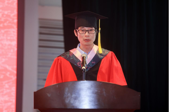 黄红立宣读优秀毕业生名单,向优秀毕业生们表达祝贺,号召同学们以优秀毕业生为榜样,坚定理想信念,担当时代责任,勇于拼搏奋斗。